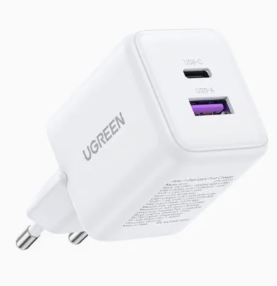 מטען קיר UGREEN 30W עם 2 יציאות – טעינה מהירה בטכנולוגיית GaN
