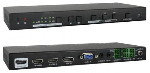 קופסת מיתוג אוטומטית מקצועית לחדר ישיבות עם כניסות 2xHDMI + VGA + DP ויציאת HDMI, עם SCALER ל-4K