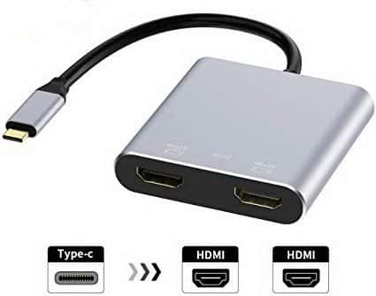מתאם USB C ל-2 יציאות HDMI תומך 4k@30hz ו-MST (לשידור 2 תמונות שונות)