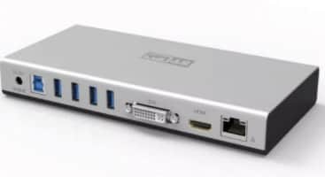 תחנת עגינה בחיבור USB 3.0 הכוללת שני חיבורי וידאו (HDMI ו-DVI) לחבר שני מסכים.